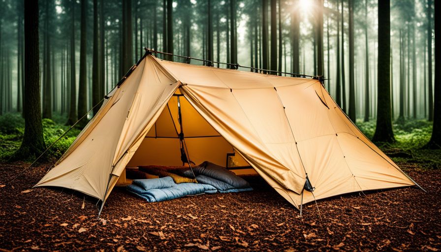 By incorporating these tips into your tarp setup, you’ll be able to keep it securely fastened over your tent even without those handy trees as anchor points. This will give you peace of mind knowing that you’re protected from rain, wind, and all other elements while enjoying every moment of your outdoor adventure.